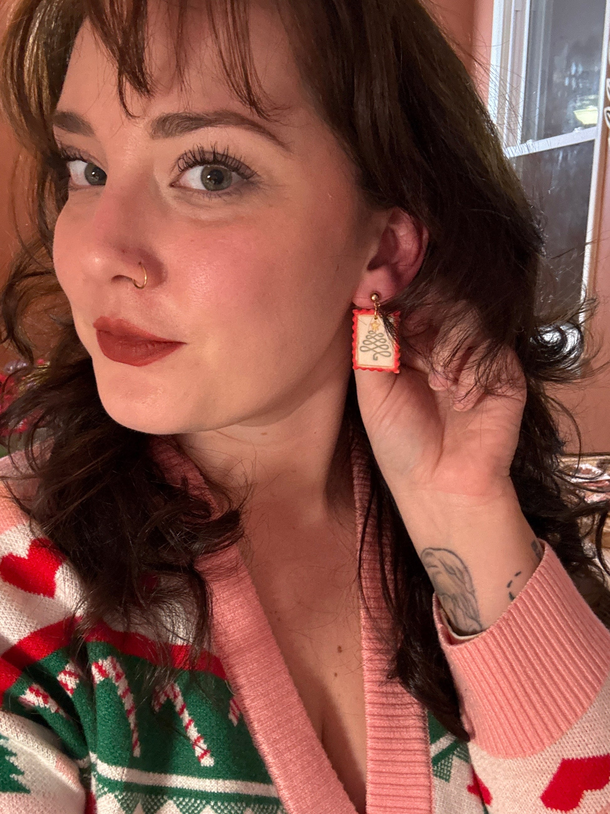 Earrings are made of polymer clay and hardware is 14k gold plated - nickel free. Each piece is rolled, cut, baked, sanded and assembled by hand, so sizes and custom-mixed colors will vary per piece. Due to the handmade nature of my pieces, slight imperfections are inevitable. Every piece is truly one of a kind.