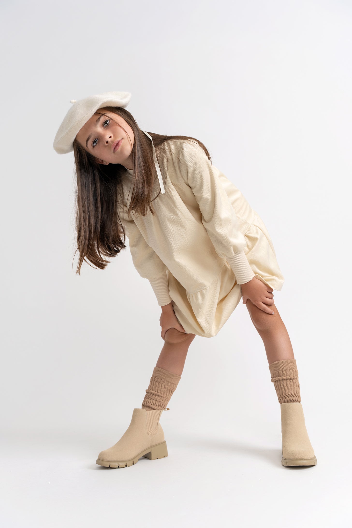 Girls textured velvet dress with rib knit neckband, cuffs and center back invisible zipper. ֲ