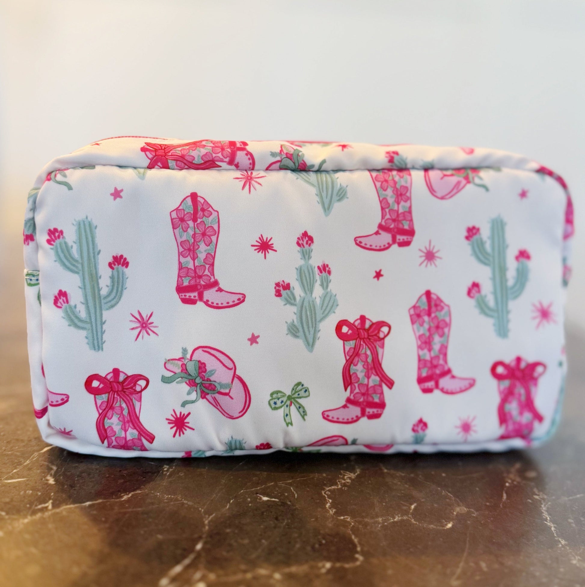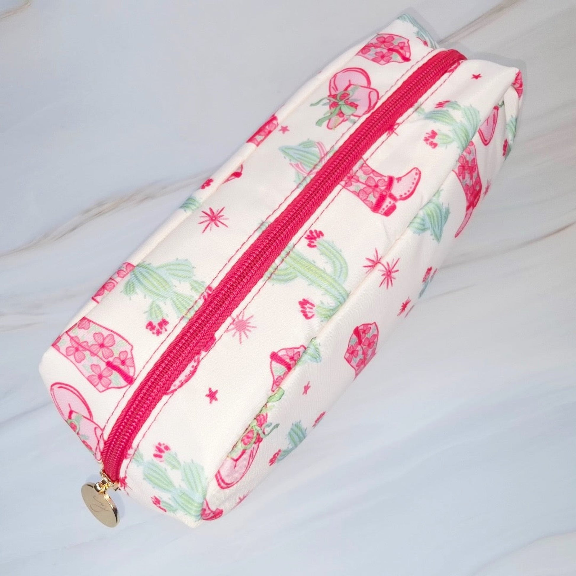 This pouch has a sweet and western-inspired design that effortlessly combines both ease and style. This versatile pouch is perfect for all your daily essentials and travels.